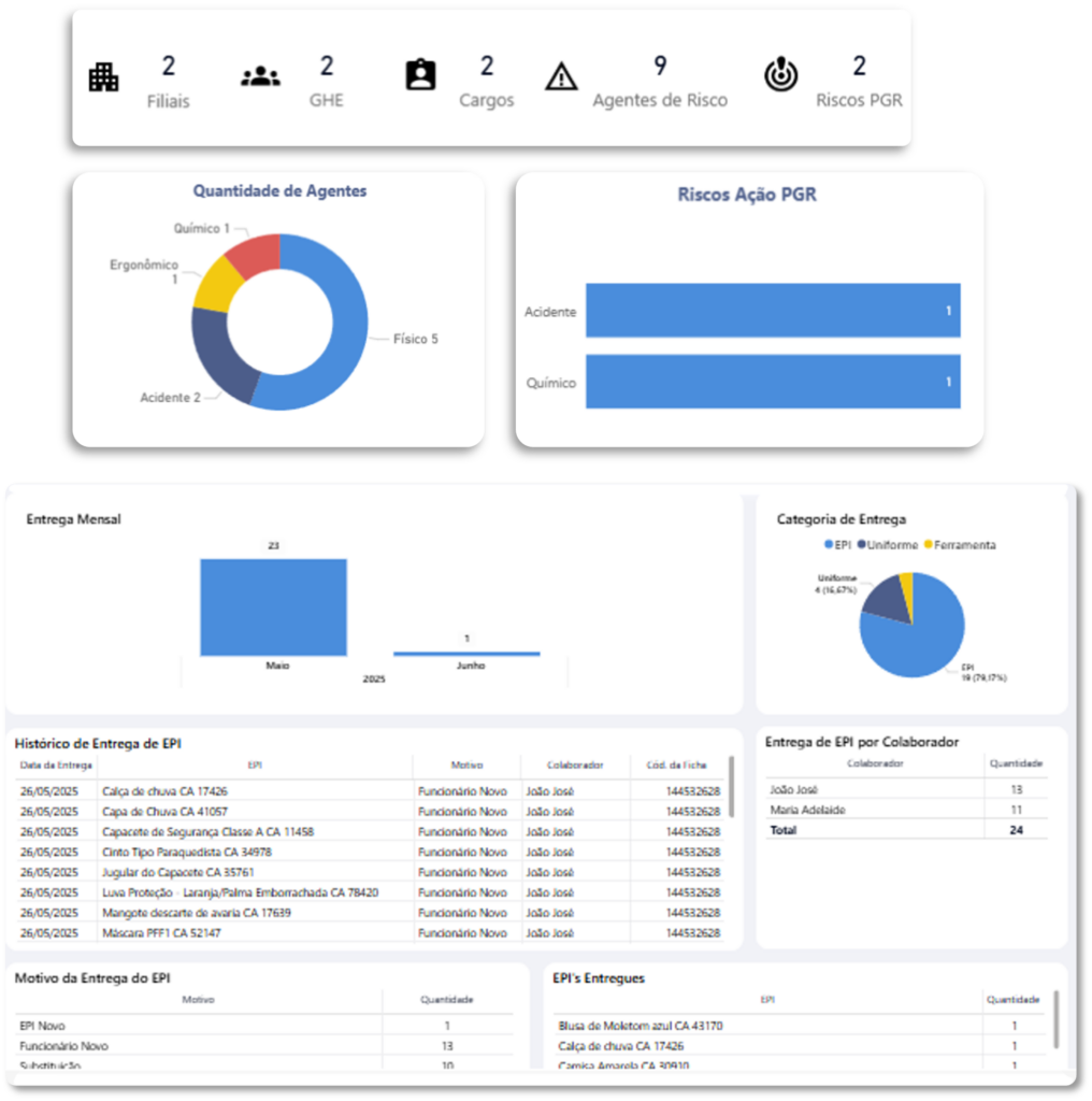 Controle indicadores de SST em tempo real com dashboards integrados ao PGR e GRO. Visualize riscos, controles e prazos, acompanhe entregas de EPIs e gere relatórios automáticos para auditorias, assegurando o cumprimento regulatório em todas as etapas da operação.