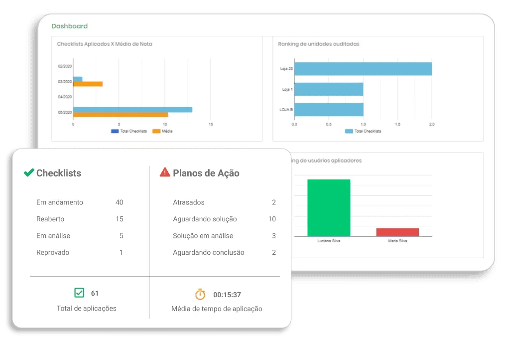 - Pode ser integrado ao Checklist Fácil para a criação de dashboards personalizados com os dados obtidos nas coletas.