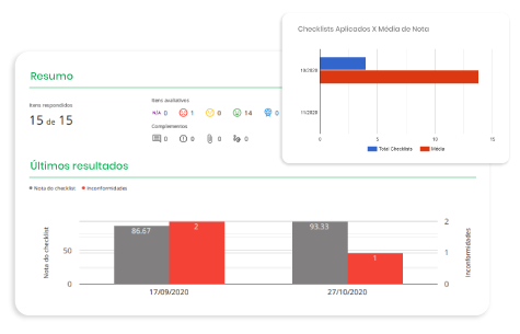Com o Checklist Fácil, você pode criar seus próprios painéis de indicadores, extraindo relatórios dinâmicos e diversos de acordo com seu segmento. A importação de dados é automática, o que ajuda na elaboração dos painéis que mais fazem sentido com sua operação, de acordo com número de colaboradores, EPIs utilizados, periodicidade das fichas, etc.