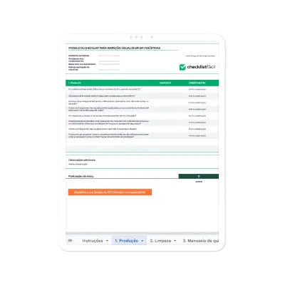 O modelo de checklist para inspeção visual de EPIs abrange formulários para checagem de diferentes atividades industriais, como: