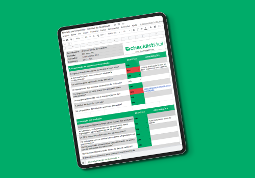Receba também um kit gratuito com ferramentas práticas, como modelo para PDCA, 5W2H, 5S, inspeção da ISO 9001:2015, e outros materiais exclusivos.