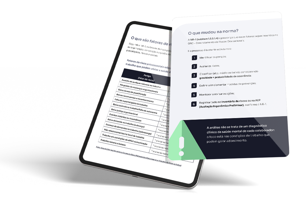 A partir de agora, o GRO deve incluir não apenas riscos físicos, químicos, biológicos e ergonômicos, mas também os fatores psicossociais relacionados ao trabalho.