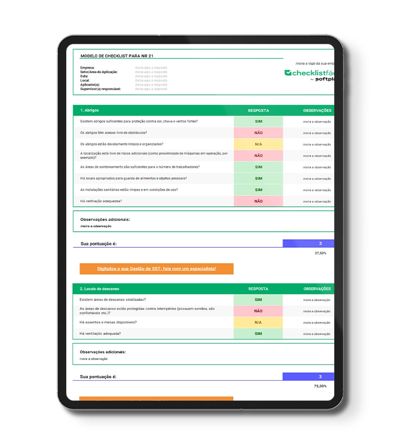 Ao aplicar o modelo gratuito de Checklist para NR 21, você vai notar que inspecionar sua operação vai se tornar algo muito mais prático. Porém, uma planilha ainda não é a opção ideal para essa finalidade.